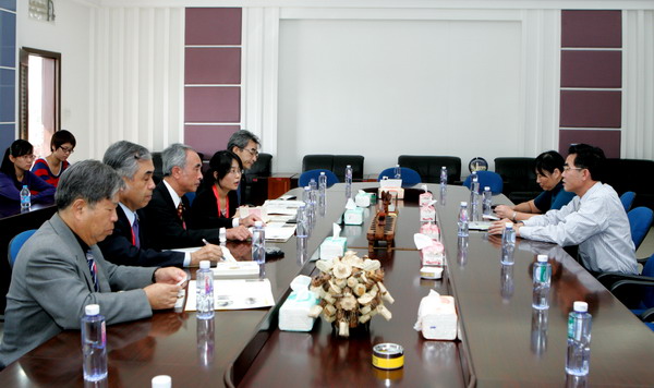 11月7日上午,日本长崎县立大学太田博道校长一行5人访问我校华文学院。华文学院院长孙汝建、副院长李晓洁等会见访问团一行。 孙汝建院长首先对日本客人来访表示欢迎,并介绍学院办学历史、专业设置及近年来开展华文教育工作的情况,希望以本次访问为契机,进一步推动双方在教育文化领域的交流合作。 太田博道校长感谢华文学院的盛情接待,他表示华文学院风景优美、气候宜人,非常适合留学生活;长崎县立大学对华文学院开办的中国文化课程,如武术、绘画、手工、音乐、舞蹈等很感兴趣。 双方就教师短期培训等方面的合作达成初步共识。会后,访问团还参观华文学院校史馆及诗琳通图书馆。 据悉,华侨大学与日本长崎县立大学自 1992 年起即建立校际学术交流与合作关系。1997 年双方签订了友好交流协议书,2003 年又续签了合作交流协议。两校曾就信息、区域经济、中日中小企业比较、民营企业等课题进行合作研究,双方共发表合作研究论文近百篇。华侨大学与日本长崎县立大学每年举行一次校际之间的学术研讨会,一年在中国,一年在日本。