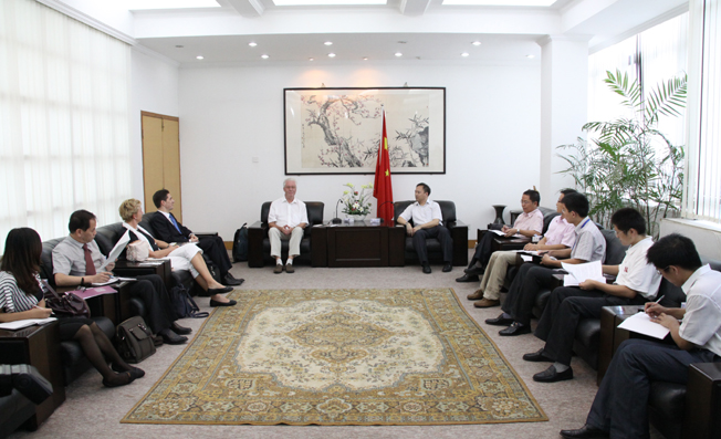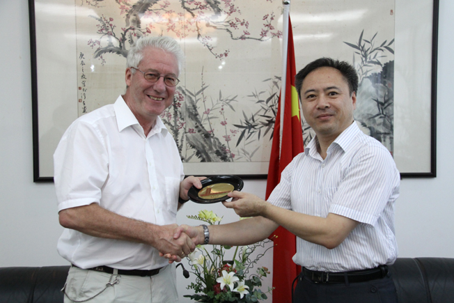 我校教师再增赴德国研修机会。据悉,德国 BSK 国际教育机构已将我校教师赴德研修名额列入 BSK 年度计划,我校数位教师赴德研修年内或可成行。 德国 BSK 国际教育机构执行总裁凯尔·费德勒一行今日上午再访华大,校长助理曾路在李克砌办公楼四楼接待室接待客人,双方就华大教师赴德研修、华大学生赴德攻读硕士研究生以及孔子课堂等项目进行商谈。 曾路向德国客人简要介绍了华大的办学情况,他称,华侨大学非常重视与国外高校的合作交流,对教师研修项目很有兴趣,BSK 机构带来的新项目给华大带来了新企望。他欢迎德国高校来校访问交流。 凯尔·费德勒向曾路介绍了此次访华情况,他称,华大与芬兰、瑞典等北欧国家合作开设孔子课堂将有很大的发展空间,同时表达了在生物学方面与华大开展科研合作的愿望。 一同前来访问的罗斯托克大学对华合作项目负责人弗里德海姆·艾克向曾路介绍了罗斯托克大学的办学情况,表达了与中国高校进一步拓展交流项目的期望。 国际交流学院、人事处、外事处等部门负责人和工作人员参加商谈。 德国 BSK 国际教育机构是欧盟及德国高校联盟授权的国际教育机构,是德国大学联盟国际教育计划的执行机构。该机构按照“ WTO 教育贸易服务协定”在欧洲、亚洲开展跨国高等教育及高等职业教育国际化业务,在相关国家派驻代表、注册机构,是目前在中国国内最为活跃的非英联邦国家的国际教育组织之一。  校长助理曾路向罗斯托克大学对华项目负责人Friedhelm_Eicher教授(左)赠送纪念品