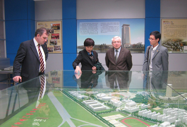 朱琦环副书记陪同客人参观厦门校区模型室(图:外事处)