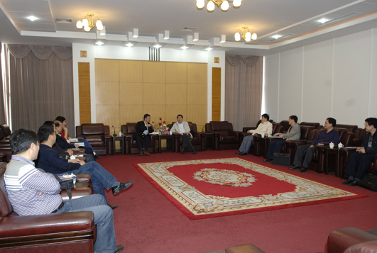27 日上午,河南省许昌学院副院长张建军率该校人事处、教育技术与信息部、计算机科学与技术学院、网络管理中心、实验室与设备管理处负责人一行 6 人到华侨大学访问。 华侨大学党委副书记、副校长关一凡,校长助理彭霈在陈嘉庚纪念堂二楼接待室会见客人。人事处、实验室与设备管理处、信息化建设与管理处负责人参加座谈。 关一凡对许昌学院客人的来访表示热烈欢迎,并简要介绍了华侨大学办学基本情况。张建军表示,此行目的主要是向一些兄弟院校学习工作经验,增进校际间的交流,共同进步。 双方进行了广泛深入的对口交流,主要从人事制度、设备管理及网络管理三个方面展开探讨,包括人事制度改革、岗位设置、岗位津贴分配;网络资源开发、网络教育资源共享、校园网安全管理、E 卡通管理与功能的发展;实验室建设与设备管理、大型及贵重仪器的共享、采购制度等方面工作。 访问团在交流后表示很受启发,称赞我校有许多方面的工作值得学习和借鉴。  副校长关一凡(右)在陈嘉庚纪念堂二楼接待室会见访问团一行