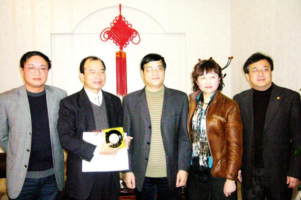 张禹东副校长与洪春棋处长(左二)、沈宏副主任(右二)合影 |