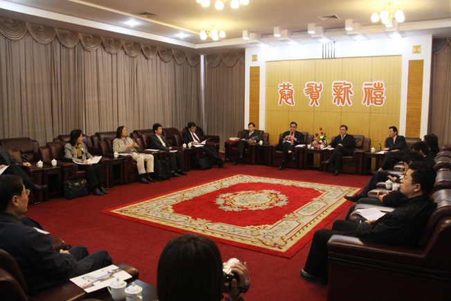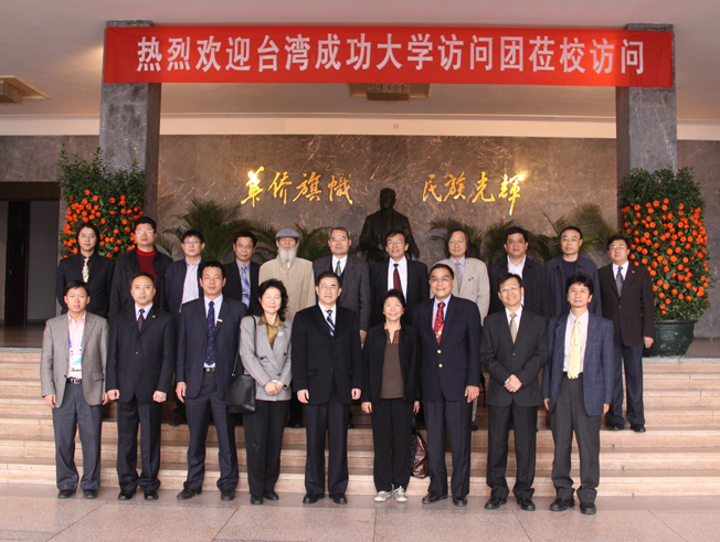 昨日,台湾成功大学资深执行副校长冯达旋率该校教务长、总务长、图书馆馆长、通识中心主任、人文社会科学中心主任、文学院院长、中文系主任等一行 11 人,借赴泉州参加“首届海峡两岸闽南文化节”之机访问华侨大学。 华侨大学校长丘进、副校长吴季怀、校长助理曾路在陈嘉庚纪念堂二楼接待室会见客人。外事处、后勤与资产管理处、学生处、图书馆、文学院、哲学与社会发展学院负责人陪同会见。 丘进对冯达旋副校长一行的到来表示欢迎。他向客人简要介绍了华侨大学的办学历史、办学规模、办学特色、学科发展等基本情况。他说,华侨大学目前正在开展和台湾的高等教育合作,希望今后有更多台湾学子来华大学习,也期待能得到成功大学这样国际知名一流大学的支持和帮助。 冯达旋同时也表达了对两校开展友好合作的良好愿望,希望借此机会,探讨如何建立促进双方共同发展的合作事宜。 台湾成功大学总务长陈景文、教务长汤铭哲、图书馆馆长谢文真分别介绍了各自分管的工作,就所关心的问题与我校相关负责人进行了交流。  座谈现场