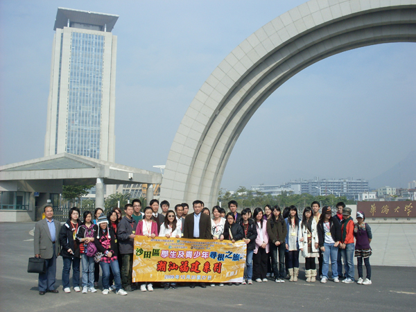 24 日下午,我校香港校友、香港沙田区议员潘国山带领香港国民教育沙田区委员会学生团到我校厦门校区参观访问。 在校统战部部长杨存泉、驻港办副主任孙辉轩的陪同下,香港学生团一行先后参观了厦门校区模型室、四端文物馆、综合教学楼群、图书馆、学生宿舍等教学文体生活设施。参访学生对我校厦门校区表现出极大的兴趣和热情,参观过程中,积极与随行的我校香港学生沟通交流,认真咨询了解校区的详细情况,对厦门校区规划建设的宏伟和美丽称赞不已。 在王源兴国际会议中心,杨存泉部长向香港参访学生详细介绍了我校的实际情况、发展规划以及在校香港学生的生活学习情况。潘国山议员对母校的热情接待表示了感谢,他表示,华侨大学厦门校区给到访的香港学生留下了深刻美好的印象,今后他将继续为母校与香港地区的沟通联系做出力所能及的贡献。  访问团一行在厦门校区大门前合影