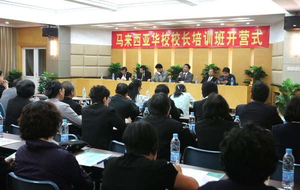 由中国海外交流协会主办,华侨大学华文学院承办的2009年马来西亚华校校长培训班,24日上午在华文学院学术报告厅举行开班仪式。66名团员将在华文学院开始为期14天的学习交流活动。 华文学院党总支书记赵明光、副院长陈旋波、副书记张灯,培训班领队彭忠良校长、副领队彭运明校长等出席了开班式。学院培训部主任李金钞主持开班式。 陈旋波副院长介绍了华文学院的办学历史、专业设置、办学特色、校园文化及近年来在海外开展华文教育工作的情况,并表示华文学院将为马来西亚华校开展华文教育工作提供进一步的帮助和支持。 彭忠良领队向华文学院的热情接待和对本次培训活动的精心安排表示感谢,并相信通过本次培训,可以提升学员的管理能力、教学技巧及专业教育服务水平,今后为中华文化的传承与发扬做出更大贡献。 开班仪式结束后,校长团的成员还与学院领导就如何开展华文教育工作等问题进行了交流和探讨。 据了解,华文学院不仅为培训班开设了教学心理学、学校管理理念、教育心理学、中国文化等内容丰富的讲座,还将安排学员前往厦门市金尚小学、厦门市前埔南区小学、翔安区马巷中心小学进行教学观摩与交流。