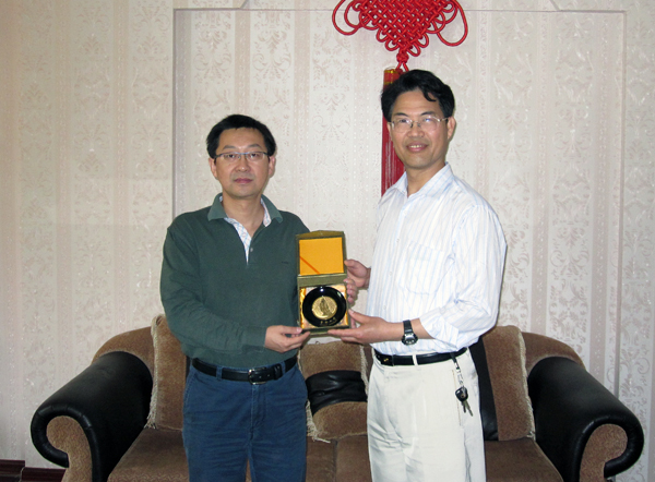 11 月 2 日,徐西鹏副校长会见华裔知名学者、新西兰皇家科学院高级研究员林俊生教授,我校外事处处长项士敏、分子药物学研究所所长许瑞安教授、副所长刁勇教授等参加会见。 双方就我校与新西兰皇家科学院之间的学术交流,利用现代化技术改进教学手段等问题交换了看法,气氛十分融洽、热烈。徐西鹏副校长向林教授赠送纪念品。林教授邀请徐西鹏副校长在方便的时候到新西兰进行学术考察。 林俊生教授主要从事生物制药、细胞分子生物学、分子免疫学和临床医学研究。作为新方首批五名赴华科学家之一,林俊生教授此行将以我校分子药物学研究所作为主要合作单位,开展中国科技部与新西兰科技部首批科技合作项目“核糖体开关识别”的研究工作。此项目将开启我校与新西兰方面进行长期国际科研合作序幕。  徐西鹏副校长向林教授赠送纪念品
