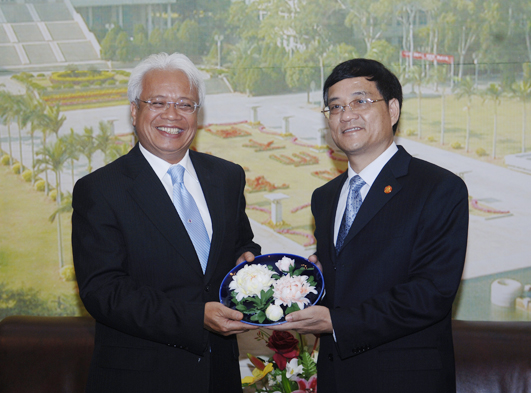 8月19日上午,泰国驻华大使马纳塔先生一行4人访问我校,张禹东副校长接见了来宾,双方就在泰国开展华文教育事宜展开了深入的探讨。 在陈嘉庚纪念堂二楼接待室,张禹东副校长首先向来宾介绍了目前我校华文教育的基本情况,他认为中泰两国人民要相互了解对方的风俗,语言教育起到十分重要的作用。张副校长更表态,我校愿以最大的诚意在泰国开展华文教育的工作。 泰国大使表示,在泰国开办中文语言学院,不仅是语言上的教学,更是一种文化的教学,有利于中泰两国加深文化交流。华侨大学肩负着发展全球华文教育的使命,而且在这方面有丰富的教学资源,因此希望学校能给予教学经验等方面的支持。 随后,双方就语言学院的合作项目进行了讨论。据悉,泰国将在国内的商务中心开办一所教授中文的语言学校,学校将以轻松、互动、自由的教学方式对社会各阶层人士教授中文,这次寻求与我校的合作旨在使其成为泰国国内最好的语言学院。