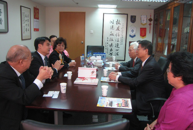 正在香港访问的华侨大学党委书记李冀闽, 12 日上午率访问团一行拜访了中国高等院校香港校友会联合会(简称高校联),与该会会长郭明华先生等进行了亲切友好的交流。 郭明华简要介绍了高校联的历史、主要工作及工作成效。他说,目前有八十余个校友会加入高校联,华侨大学香港校友会是高校联的最重要力量之一,是各类会务活动中的中坚力量。 李冀闽介绍了华侨大学的办学历程、办学宗旨及发展情况,对中国高等院校香港校友会联合会给予华侨大学香港校友会的支持和高度评价表示感谢。 中国高等院校香港校友会联合会李常盛监事长,伦志炎常务副会长,梁淦基副会长,匡增意秘书长,华侨大学董事会董事、华侨大学香港校友会名誉会长、中国高等院校香港校友会常务副会长李碧葱女士,华侨大学香港校友会会长曾敏丽女士等参加会见。 访问团成员有华侨大学校友总会会长、老校长庄善裕教授,外事处项士敏处长。 11 日晚上,访问团一行还与香港校友会谢文盛、王钦贤、李碧葱、曾敏丽、汪琼南、潘耿福等历任会长进行了座谈。  李冀闽书记(右二)与郭明华会长(左二)会谈
