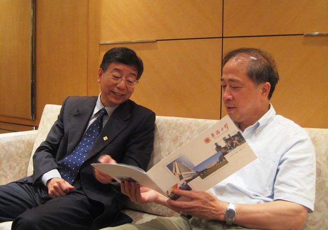 14 日上午,李冀闽书记率团拜访中央人民政府驻香港特别行政区联络办公室(简称中联办)教育科技部部长、校董潘永华教授。 李书记感谢潘永华部长出任我校第五届董事会董事并邀请潘部长在合适的时候访问我校。 李书记向潘部长介绍了华侨大学的办学情况,着重阐述了华侨大学“为侨服务,传播中华文化”的办学宗旨、“宽容为本、和而不同”的校园精神、“一元主导、多元交融”的校园文化及“一校两生、因材施教”的培养模式,并希望香港中联办一如既往地关注华侨大学及华侨大学香港校友会。 潘永华部长对华侨大学的办学宗旨、培养模式及华侨大学校友在香港各行各业做出的贡献表示赞赏,对华侨大学及华侨大学校友为维护香港繁荣稳定所做的努力与贡献表示感谢,并表示作为华大的一份子将为学校的发展建设做出应有的贡献。 13 日晚,李冀闽书记还与董事会副董事长施子清先生、董事兼副秘书长蔡素玉小姐及董事林树哲先生、丁良辉先生等进行了座谈,听取对学校发展的建议及意见;座谈中,厦门厦信投资集团有限公司董事长张志猛先生表示将捐资 500 万元支持华侨大学的建设发展。  李冀闽书记向潘永华部长(右)介绍华侨大学