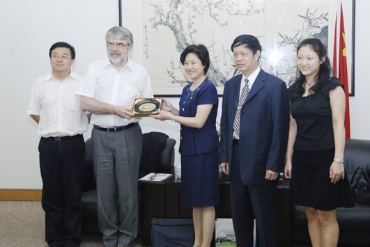 6 月 21 日,朱琦环副书记在李克砌纪念楼四楼接待室会见了来访的加拿大维多利亚大学钢琴系主任沃乐鹏( Bruce Vogt )教授。双方就在音乐领域及教育教学方面建立合作等有关问题进行了愉快的交谈,沃乐鹏(Bruce Vogt)教授高兴地接受了明年5月间来华访问、讲学的邀请。 外事处负责人、音乐舞蹈学院负责人会见时在座。 当晚,沃乐鹏教授在泉州音乐厅举办了“雅马哈之夜”钢琴演奏音乐会,音乐舞蹈学院杨曦婷博士与沃乐鹏教授合作演奏的最后一个曲目《军队进行曲》把音乐会推向高潮。 据了解,加拿大维多利亚大学在 2008 年度加拿大大学排行榜上位居榜首,其钢琴系在加拿大诸高校的钢琴系中也是名列前茅。  朱琦环副书记(右)会见沃乐鹏教授(左)