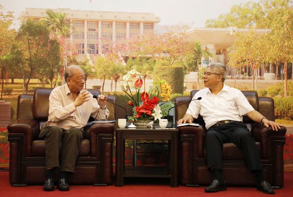 刘斌代表学校欢迎潘国驹一行的来访。他简要介绍了学校办学特色以及人才培养、学科建设等方面的基本情况,华侨大学南洋学院的发展近况等。刘斌表示,学校将落实建立联络机制,进一步开展华侨大学与新加坡在教育、文化等方面的交流合作。