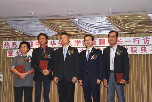 徐西鹏在张东浩见证下为华侨大学泰国校友会会长、永远名誉会长颁发聘书