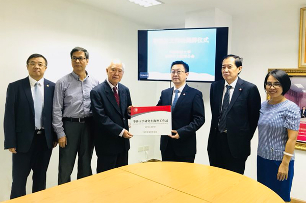 徐西鹏向寮都公学颁授华侨大学研究生海外工作站牌匾
