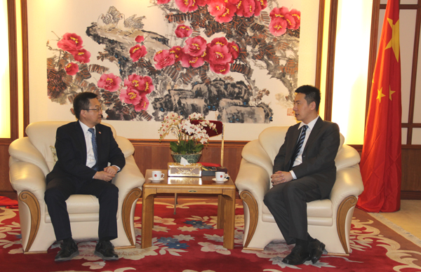 在中国驻老挝大使馆,徐西鹏向王天文大使介绍了华侨大学老挝生源及外国政府官员中文学习班老挝学员情况。王天文介绍,近两年中老关系发展迅猛,中国政府每年为老挝培训大批政府公务员,大量中资企业落户老挝,急需懂中文的各类建设人才,而老挝自身教育资源稀缺、基础薄弱,远不能满足人才需求,希望华侨大学发挥自身特色和优势,为培养中老友好的专业人才作出贡献。徐西鹏表示,学校愿意尽所能,加强与老挝的教育交流,继续为老挝培养更多的各类人才。