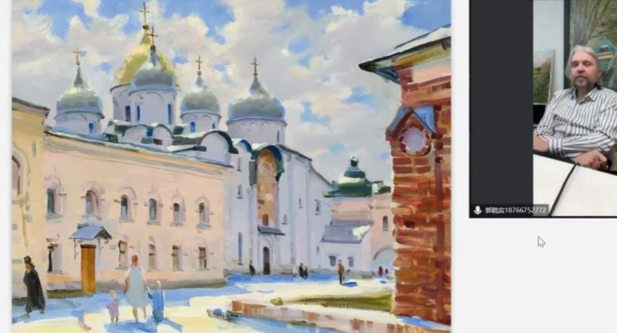 叶弗吉尼•罗马什科以“俄罗斯现当代油画创作现状与佳作赏析”为主题,分享了对俄罗斯现当代油画以及来自俄罗斯国家艺术科学院、俄罗斯美协、俄罗斯国立工艺美术大学等艺术家作品的赏析。