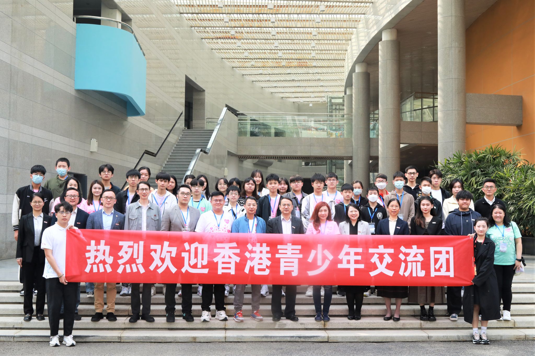 香港中联办新界工作部宣教处二级调研员、副处长袁名别,香港沙田民政事务专员、太平绅士柯家乐,香港新界青年联会副主席、“义连班”主席刘德荣,我校副校长王建华等出席活动。我校港澳台侨事务办公室、招生处、校团委、驻港办负责人,部分师生代表等参加交流。