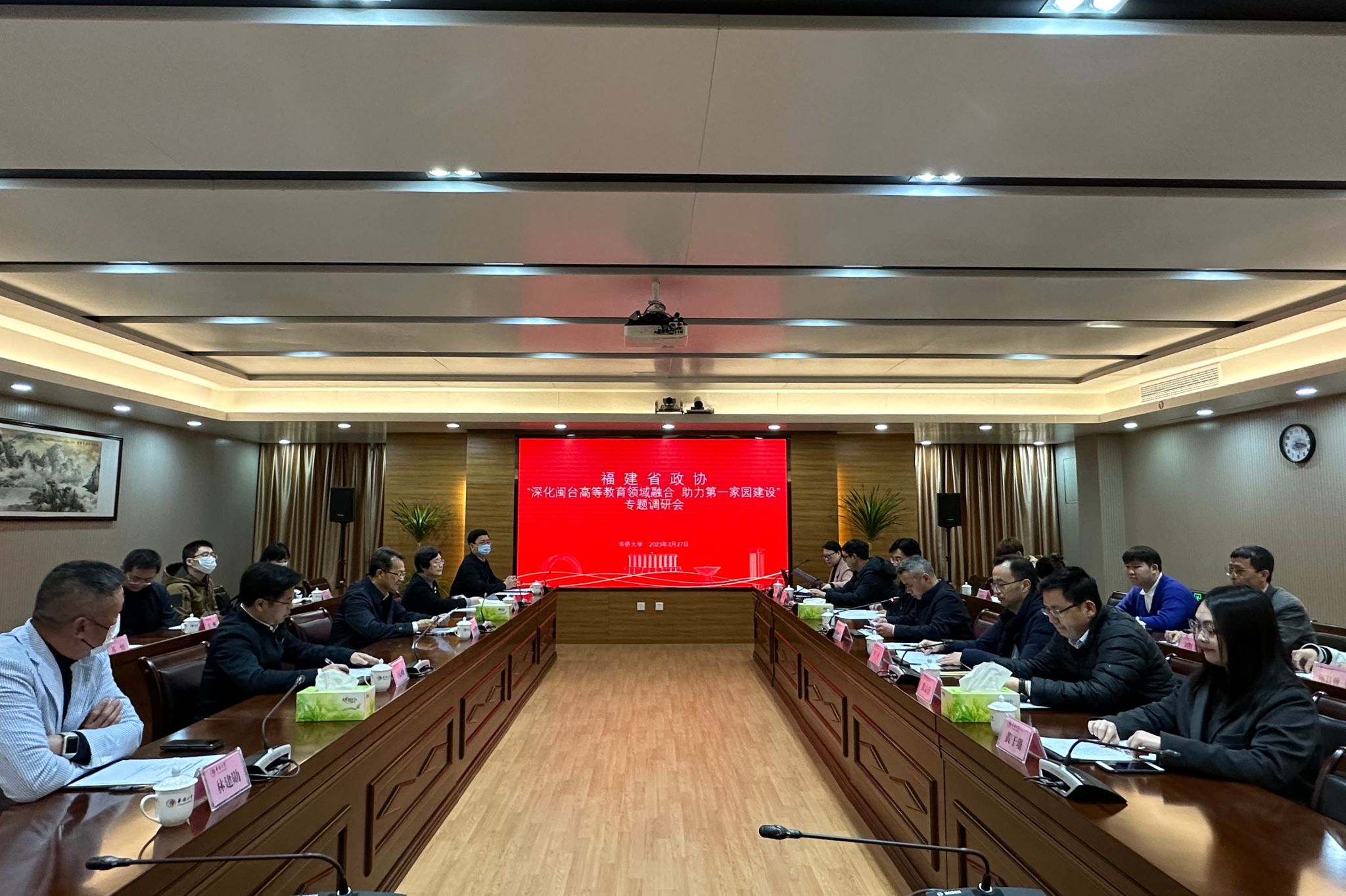 3月27日下午,福建省政协港澳台侨和外事委员会主任王天明一行来校开展“深化闽台高等教育领域融合 助力第一家园建设”专题调研。我校副校长许志勇陪同调研座谈。
