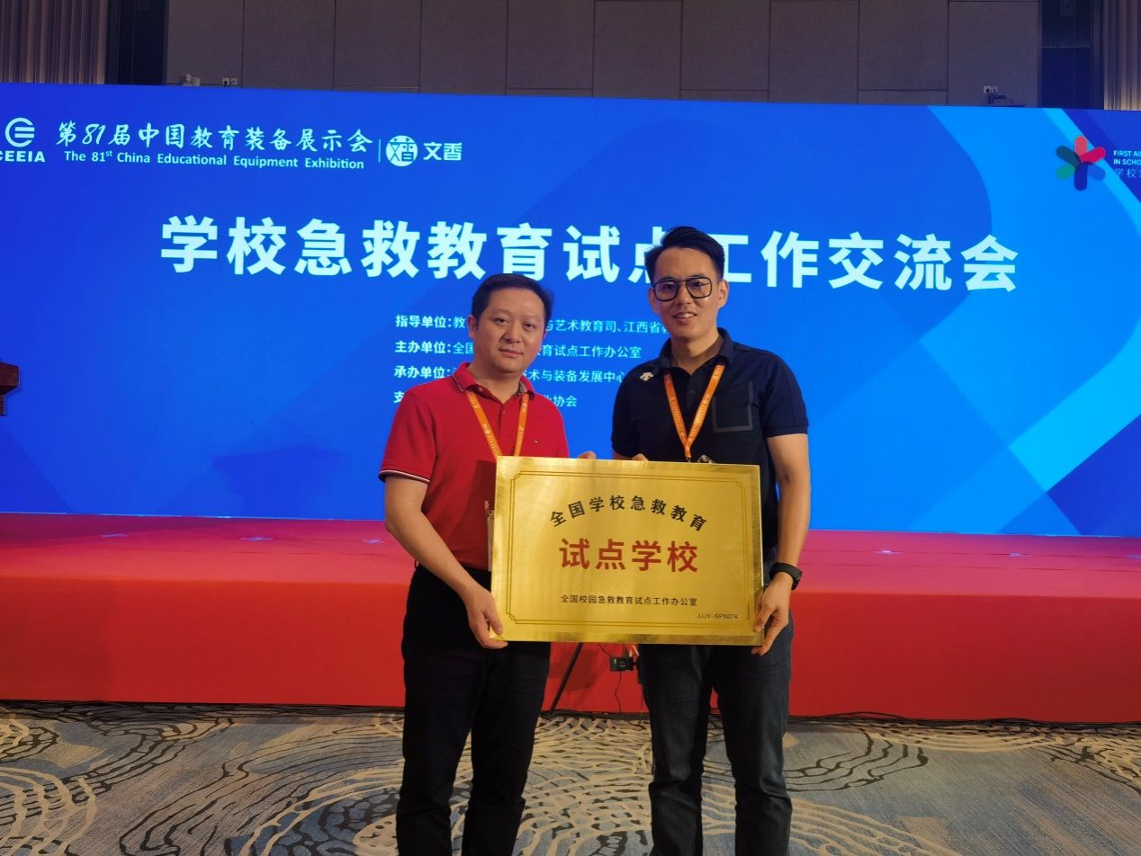 4月21日,全国学校急救教育试点工作推进会在江西南昌举行,我校校医院副院长徐鹏飞、医务科副科长陈东奇参加会议并参与授牌仪式。