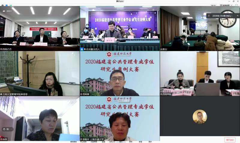 1月9日,由福建省学位委员会办公室主办,福建师范大学研究生院、公共管理学院承办的2020福建省公共管理专业学位研究生案例大赛总决赛在线上举行。我校政治与公共管理学院研究生获得二等奖1项、三等奖1项。