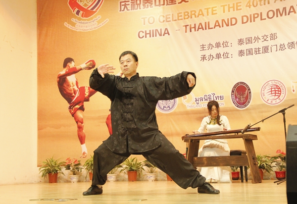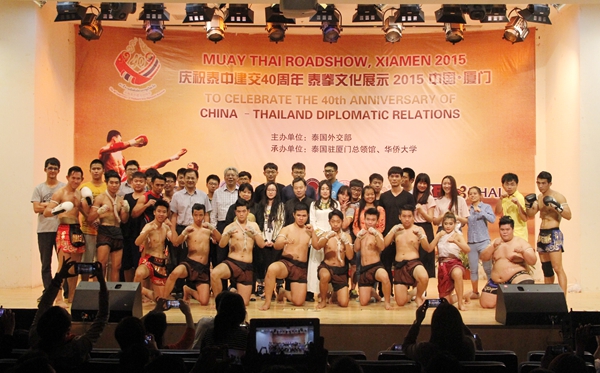 为庆祝中泰建交40周年,由泰国外交部、泰国国家基金会主办,泰国驻厦门总领事馆、华侨大学承办的“2015泰拳文化展示”活动,昨晚在厦门校区举行。