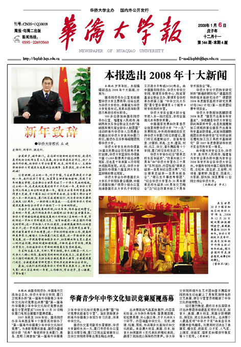 《华侨大学报》2009年新年第一期报纸今日出版,从本期第544期起,《华侨大学报》出版彩报。