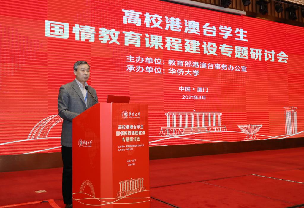 由教育部港澳台事务办公室主办、华侨大学承办的高校港澳台学生国情教育课程建设专题研讨会,4月25日至27日在厦门举行。中央统战部、中央台办、国务院港澳办、全国台联、教育部等单位和来自11个省级教育行政部门、52所高校的90余位代表参加会议。